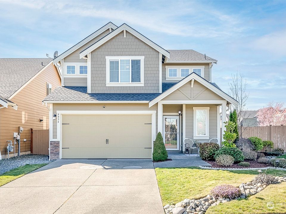 Gorgeous 4 bedroom / 2.5 bath home in Tahoma Terra on a corner lot! Light & bright open concept floor plan features high ceilings, stunning kitchen with beautiful granite countertops, tons of cabinets for storage, tile backsplash, large pantry & island with breakfast bar seating! Office/Bonus right off the living room, large dining area & spacious living room with fireplace are off the kitchen with double set of sliding doors to the fully fenced backyard with covered patio! Upstairs features loft area, 3 additional good size bedrooms- all with walk-in closets, LARGE primary bedroom with vaulted ceilings, 5pc bath & walk-in closet! Tankless water heater, A/C unit installed 2023, neighborhood has parks/sport courts & only 25 minutes to JBLM!