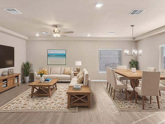 Welcome to the Tropicana Homes Topaz model- a beautifully designed 4 bedroom, 2.5-bathroom home that combines modern living with thoughtful functionality. Upstairs, you'll find all four bedrooms privately situated for maximum comfort and privacy. Both upstairs bathrooms feature double sinks, making mornings a breeze for everyone. Downstairs, the open-concept living area creates a seamless flow between the living room, dining room, and kitchen. The kitchen has an island which provides some additional seating and a spacious pantry.