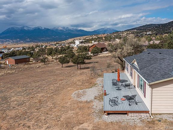 Perched on a scenic hill with sweeping views of the Collegiate Peaks, this well-maintained Pinon Hills home offers privacy, mature trees, and a peaceful neighborhood setting just minutes from downtown Salida. Enjoy year-round outdoor living from the 10' x 40' covered patio with a durable metal roof or the newly built 12' x 50' composite deck designed to take full advantage of the mountain views.