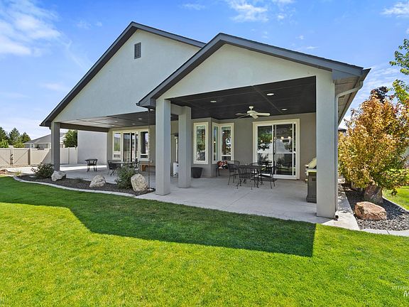 Huge rv garageShiplap accentsMature landscapingCovered patioCorner lotSoaker tubGranite counter tops