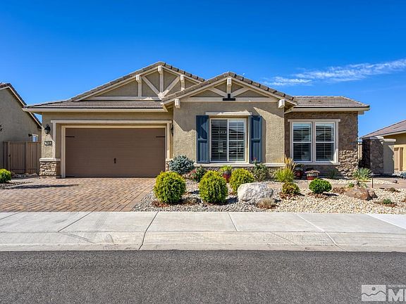 Breathtaking VIEWS of the Sierras from this gorgeous home in the Regency at Damonte Ranch community with luxury 55+ resort-style living! Nearly 2300sf of beautifully upgraded living space, including an enclosed sunroom with an expansive sliding glass door to take advantage of stunning mountain and sunset views. The sunroom flows seamlessly into thoughtfully designed outdoor living, whether enjoying al fresco dining under one of two covered patios, or soaking in the fireside hot tub. This home is a MUST see! The moment you walk through the front door, you'll be drawn to the panoramic views that span the back of this immaculate home. Beautiful plank wood flooring flows throughout this popular Bristol Bay floorplan offering 2 bedrooms plus office/den and 2 1/2 bathrooms. The kitchen is a showpiece featuring smooth white cabinetry, stunning marble quartz countertops and an incredible sea-glass tile backsplash which perfectly compliments the upgraded black stainless steel Kitchenaid appliances. The great room boasts custom built-in white cabinetry and media center, and a super efficient gas fireplace that can actually heat the whole house. Enjoy more mountain views from the primary suite, where you'll experience a true spa-like retreat with zero threshold marble tile shower w/ dual shower and rain heads and a huge custom closet with fantastic built-ins! So much attention to detail, from the warm and bright recessed can lights and Minka Aire ceiling fans in every room, to the plantation shutters and Hunter Douglas window coverings, to the whole house water softener and purifier at the kitchen sink, even a tankless hot water heater! The front of the home faces East which provides optimum morning sun exposure. The low maintenance yard was professionally landscaped by Gail Willey and includes professional brass landscaping lights in both the front and back. The home even has perimeter lights around the back and sides that come on from dusk to dawn. Just move in and start enjoying this fabulous home and low-maintenance lifestyle, along with the amazing amenities that this community offers, including indoor and outdoor saltwater pools, fitness centers, pickleball, tennis, bocce ball, billiards, and so much more!