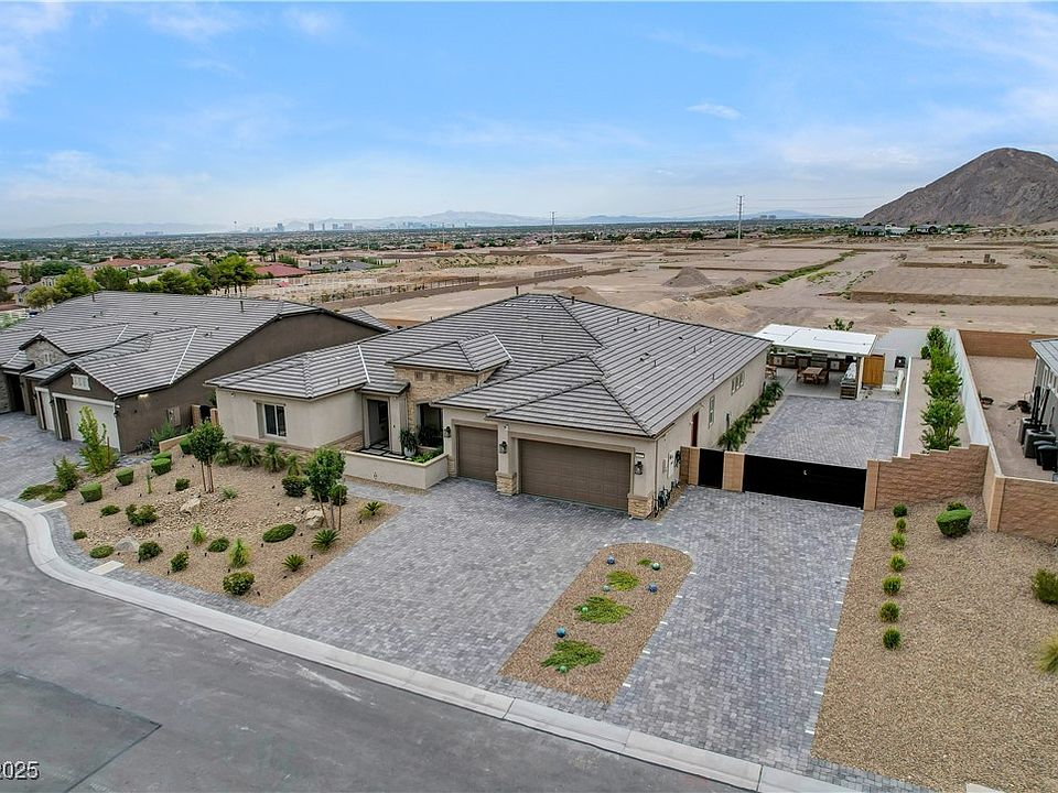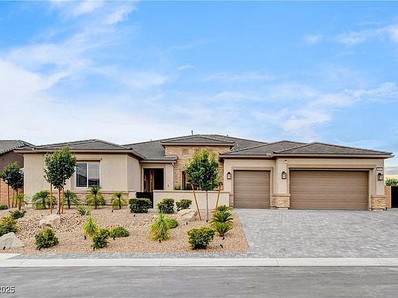 Discover your dream home in a gated Northwest Las Vegas community! This stunning 4,047 sq ft single-story gem, built in 2023, offers luxury and efficiency with owned solar panels for low energy costs. Enjoy 4 spacious bedrooms with custom closets, 3.5 elegant bathrooms, and a versatile game/movie room. The gourmet kitchen features a 72” Monogram refrigerator, 48” dual fuel range, large island, and butler’s pantry with wet bar. The great room impresses with a 20’ multi-slide door, tray ceiling, 77” linear fireplace, whole-home audio, WiFi mesh, and 21 built-in speakers. Relax outdoors by the pool/spa with waterfall, entertain on a 24’x32’ covered patio with full outdoor kitchen, grill, fire pit, and 12 outdoor speakers. The 0.41-acre lot includes RV parking, a Koi pond, and 3 EV chargers. Move-in ready, this desert oasis awaits!