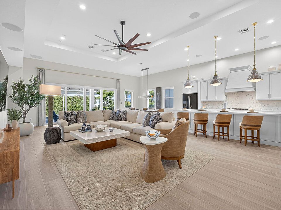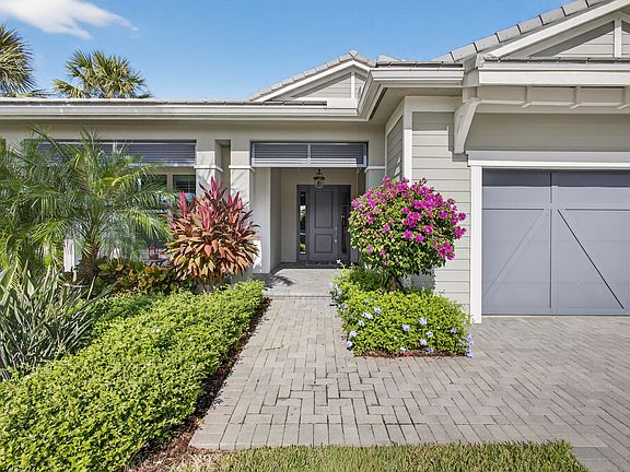 This Inviting home greets you with a covered porch and a welcoming entry, leading into a grand foyer that opens to an expansive great room with a resort style ambiance. Offering 3 bedrooms, 3 baths plus office on a spacious corner lot. Enjoy the convenience of extra guest parking and walking distance to the Club with a multitude of amenities. Just a few of the upgraded features throughout include, custom cabinetry, designer faucets, upgraded flooring, French doors, granite countertops, tile backsplash, upgraded baths, enhanced electrical, custom window treatments, custom garage cabinets, ceiling fans, outdoor kitchen, designer lighting upgrades, built in speakers, upgraded washer and dryer. The well-appointed kitchen boasts a large center island with a breakfast bar, generous counter and cabinet space and a roomy walk-in pantry. The spacious primary suite features dual custom walk-in closets, an en-suite bath with a dual-sink vanity, soaking tub, large glass-enclosed shower, linen storage, and a private water closet. The secondary bedrooms offer walk-in closet space and share a bathroom with separate dual-sink vanities. Additional highlights include a flex room off the foyer, a convenient powder room, a centrally located laundry room and plenty of extra storage space. Step outside into the private Tropical oasis, luxurious pool ideal for lounging or entertaining in year-round sunshine. This home offers single-level living featuring modern, open-concept floor plan. Experience private, resort-style living at its finest in this vibrant Regency Avenir community. Located in the sought-after Palm Beach Gardens, this community blends contemporary home designs with exceptional amenities, all set in a relaxed and inviting atmosphere. Residents of Regency at Avenir enjoy exclusive access to The Pearl, the community's 22,000 sqft private clubhouse offering an onsite activities director, a wide array of special interest clubs, activities, and events. Amenities at The Pearl include a picturesque resort-style pool with cabanas, spa, pickleball, tennis, two fitness centers, wine storage, card and game rooms, ball room, indoor/outdoor lounge, a golf simulator, outdoor amphitheater, outdoor game area. Conveniently located near Sand Hill Crane Golf Club an 18-hole championship course, The new Nest Par 3 Course and various dining options. Across the street is PGA National's Estate Course, with membership options available. Minutes away from shopping, dining, the Airport, Palm Beach and so much more.