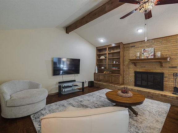 You'll love this spacious 4 bedroom updated home. Baths and kitchens have been remodeled and flooring is mostly handscraped wood floors. Three bedrooms have carpet. Pella windows and sliding patio door with marble window sills. Garage has insulated door and storm shelter in the floor. Kitchen has beautiful wood cabinets. All bottom cabinets have pull-outs. Check out the size of the rooms! Will accommodate large furniture. 18X36 inground heated pool. New handrail, one year old pool heater, pool saver fence, waterfall is a great feature. Dogwood and cherry trees in backyard. Pool house features mini-split heat & air, 3rd bathroom with toilet and shower. Kitchenette features fridge and storage and kitchen sink. Sprinkler system cover yard. Additional storage building in backyard. Such a fantastic, fun house!