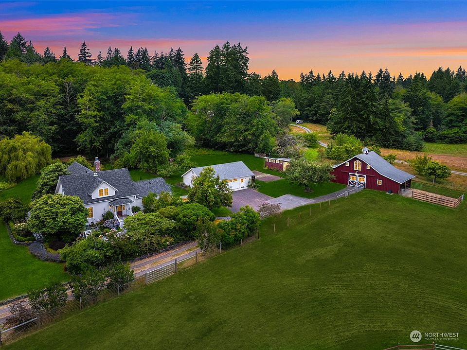 The essence of Bainbridge Island is here in this historic, beautifully updated farmstead. The calendar-worthy farmhouse graces a shy 4-acre parcel in coveted Rolling Bay. Fully renovated in 2018 by Smallwood Design & Const., the home blends modern function with respect for its historic roots. Bucolic views abound! Classic red barn features heated tack room w/60’ round pen & large pasture. Orchard beside charming duck pond; gardens & chicken coop complete a picture of self-sufficiency. Sun-filled living spaces & gorgeous kitchen open to spacious flagstone patio. Staircase leads to 3 charming bedrooms tucked under the peaked roof, plus finished basement. Dutch door & window seats evoke this stunning home’s past, now ready for your future.