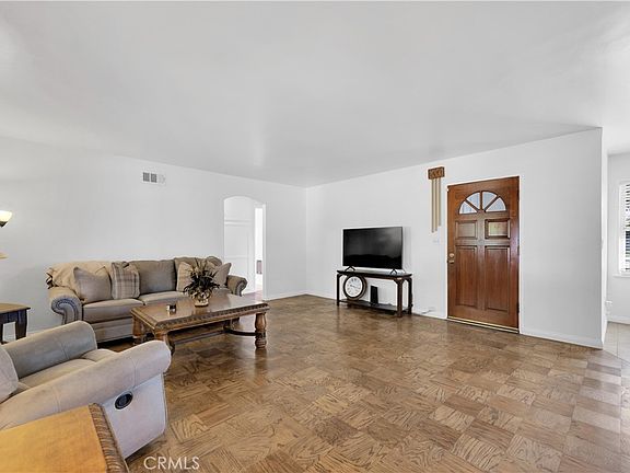 Appealing, single story, 3 bed, 2 bath, mid-century rambler style Chatsworth home in friendly, residential neighborhood. Great curb appeal with a large front yard, fully gated with low, decorative wrought iron fencing, and vintage aesthetic of wood siding and decorative shutters on the façade. Security gate opens to a small, covered front porch and on to the entry into a welcoming open plan living space. The living room boasts solid wood parquet floors, large, mullioned windows, and direct access to the back patio. The living room flows into the dining area, boasting tile floor and a commanding, white, brick fireplace, and connects seamlessly to the updated kitchen. The kitchen offers rich wood cabinetry, granite countertops, stone tile backsplash, recessed lighting, and white appliances, and a convenient breakfast bar linking back to the living room to enhance the open concept feel. Down the hall are three good-sized bedrooms, one with tile floors while the others have solid wood parquet , one of which also has a glass slider to the patio. The home also has two, updated, ¾ hall baths one with a tiled shower, one with a tub. An oversized garage, extended with permits, offers tandem parking for up to four vehicles, abundant storage space, laundry area, and potential for conversion to an ADU or guesthouse. Gated driveway access is from the rear of the property, off the alley, and has ample space for RV or Boat parking. The private backyard is ideal for entertaining and everyday living, featuring covered and uncovered patios, perfect for BBQs or dining al-fresco, wide lawn, decorative planters, and stone walkways to enjoy the space. Well situated near shopping, dining, entertainment, and recreational amenities, this property offers versatility, space, and a prime Chatsworth location. Don’t let this one pass you by!