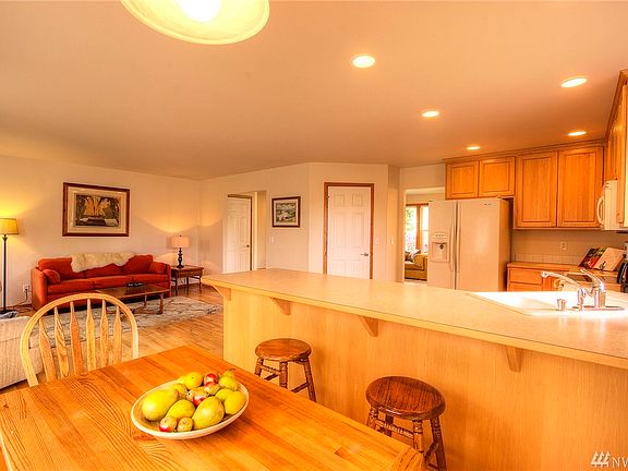 Immaculate one-level, three-bedroom, two-bath home in Vashon town. Light bright and open. Maple floors, maple cabinets and gas fireplace. Owner's suite with bath. Attached two-car garage, large deck and nicely landscaped yard. Great location on the bus line and in town. Spacious backyard borders a frog filled green belt.