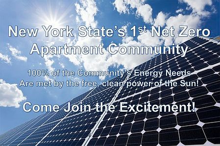 BRAND NEW - Feel great about where you live! New York State's 1st Net Zero Apartment Community Come be a part of the excitement! Come see the Capital Region's newest, most advanced, eco-friendly apartment community. netZero Village is not your typical apartment complex; it is the future of housing today. netZero Village generates 100% of its energy needs from the free, clean, power of the sun. Our beautiful apartments are the most eco-friendly available anywhere and have numerous advantages over your average apartment home. Feel good about living in a community that essentially leaves no carbon foot print while enjoying superior amenities, features and comfort for one convenient all-inclusive rent payment. All-inclusive monthly rent includes: - ALL UTILITIES: Heat, air-conditioning, electricity, hot water, sewer & trash - Full sized WASHER AND DRYER in each unit - FREE INTERNET, Local TV and FREE use of Roku player* - FREE covered parking - All LED lighting and EnergyStar appliances - Large, modern kitchen with high-end cabinetry - Stainless steel appliances including dishwasher & microwave - Beautiful hardwood style flooring throughout - Spacious 9 foot ceilings & large, bright south facing windows - Smoke-free buildings and grounds - Superior indoor air quality & comfort - Electric vehicle charging stations - Convenient 1st Floor location, No steps into the unit. - Friendly, courteous, professional management * with extra security deposit For more information please visit: netzerovillage.com or call (518) 207-5836