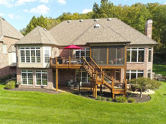 Situated on truly one of the very best lots in all of St. Albans, you can live everyday as if you are on vacation. This beautiful home backs to the 13th tee box of the Lewis and Clark course, but in addition, you can see a total of 5 different holes from the deck and screened porch. A peaceful, beautiful setting, allows you to enjoy nature at its best year round. The 1st floor features an open kitchen, breakfast and family room in the center with beautiful views to the rear. Custom cabinetry, large breakfast bar, granite counter tops, stainless appliances, gas cook-top with hood, and tile flooring. FR has a stone fireplace/gas logs and custom built in bookcases. Separate formal dining room. First floor laundry. Master suite with bay window, coffered ceiling, private bath with his/her vanities, jet tub, separate shower, and 2 closets. The WO LL has 3 bedrooms and 2 baths as well as a family room with walk behind wet bar and stone fireplace/gas logs. Ample unfinished area for storage.