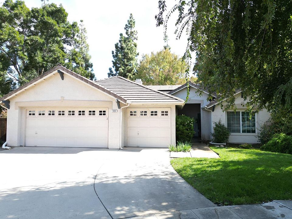 Situated on a large 1/4 acre lot in a quiet cut-de-sac in Northeast Fresno is this four bedroom, two bath home ideally located near shops, schools, services, and more. Inside the home you'll find an open floor plan with vaulted ceilings, flowing natural light, slate flooring throughout the common areas, a two way gas fireplace between the living room and dining room, and plenty of space to make the home yours. In the kitchen you'll find a five burner gas stove with a grill pan, ultra-quiet dishwasher, plenty of counter space, and many cabinets. The primary bedroom features an en-suite with a soaking tub, standing shower, double sinks, and a large closet. The other two bedrooms are well-appointed and have plenty of living space. In the gorgeous backyard you'll find a shaded patio, large grass area, mature landscaping, citrus trees, raised planter boxes, gardening shed, a side yard, and potential RV parking. There is an attached three car garage with heavy-duty shelving inside. The home also features a solar system and water softening system.