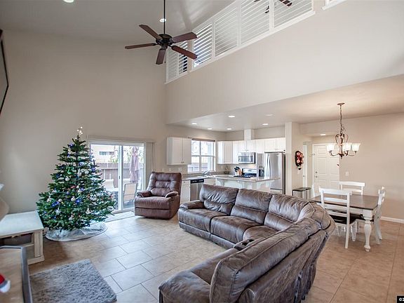 This beautiful home is set within the gated community of The Cottages at Kiley Ranch, just a short walk to the Kiley Ranch Links Golf Course. When entering, you are greeted by a large, open great room that features a gourmet kitchen complete with white cabinetry, granite counter-tops and stainless steel appliances. Also on the main level is the master suite with walk-in closet and en-suite bathroom. Upstairs is an open loft with plantation shutters that serves as a perfect, second entertaining area.