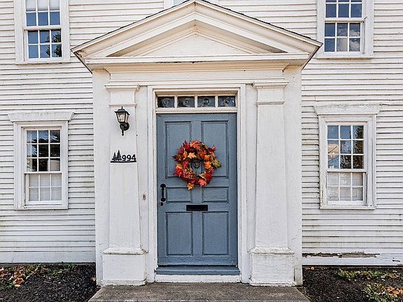 Built in 1728, the Webster-Sawyer-Smiley House is an iconic example of early 18th century American architecture known as a "salt box" with a distinctive roofline and charmingly simple facade. This 8-room second period home, with 4 bedrooms and 2 baths, is an outstanding blend of period details and modern amenities. The interior offers many original features including the classic center chimney, 5 fireplaces with original mantles, period paneling, Indian shutters and 18th century hardware. Additional highlights are a remarkable bullseye transom over the front door and wide pine floors. The home offers a 1-car garage with loft storage and a large private back yard. Located on 2 acres within a short distance of Route 495 and the New Hampshire border, this historic home has proudly sat at the 994 Main Street, Haverhill, Mass. location for nearly 3 centuries. Its owners have included important Haverhill families that play prominent roles in history. A local landmark. Ideal for the purist.
