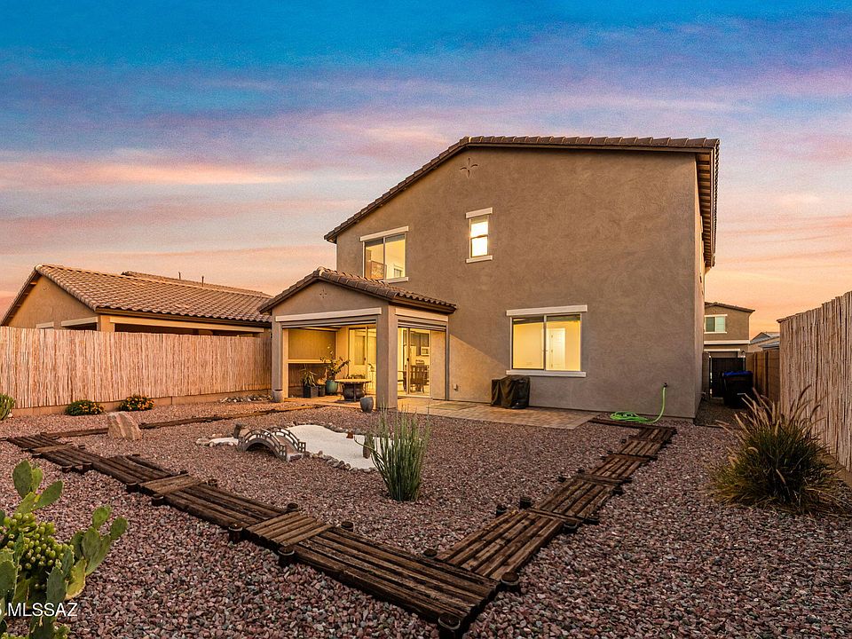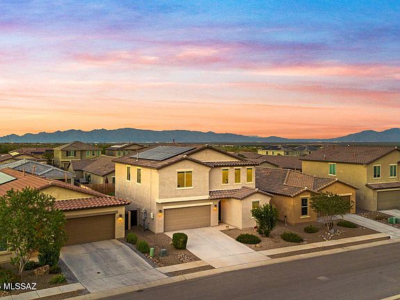 Over $70K in added upgrades and extras! Owned solar for energy savings, flex room on the first floor ideal for an office or optional 5th bedroom, back patio with motorized sun screens enclosing all sides to enjoy year-round comfort in your landscaped backyard with added privacy fencing, and whole-home water softener plus RO-system. This Moonstone floorplan with upgraded design package includes granite countertops throughout, a tiled primary shower, and wood-look luxury flooring. An extended 2-car garage offers flexibility for home gym, storage space, or full-sized vehicles. Additional features include multiple walk-in closets, double-vanity guest bath, and open loft with contemporary wood railing. Don't miss this beautifully upgraded home in the amenity-rich community of Rancho Sahuarita.