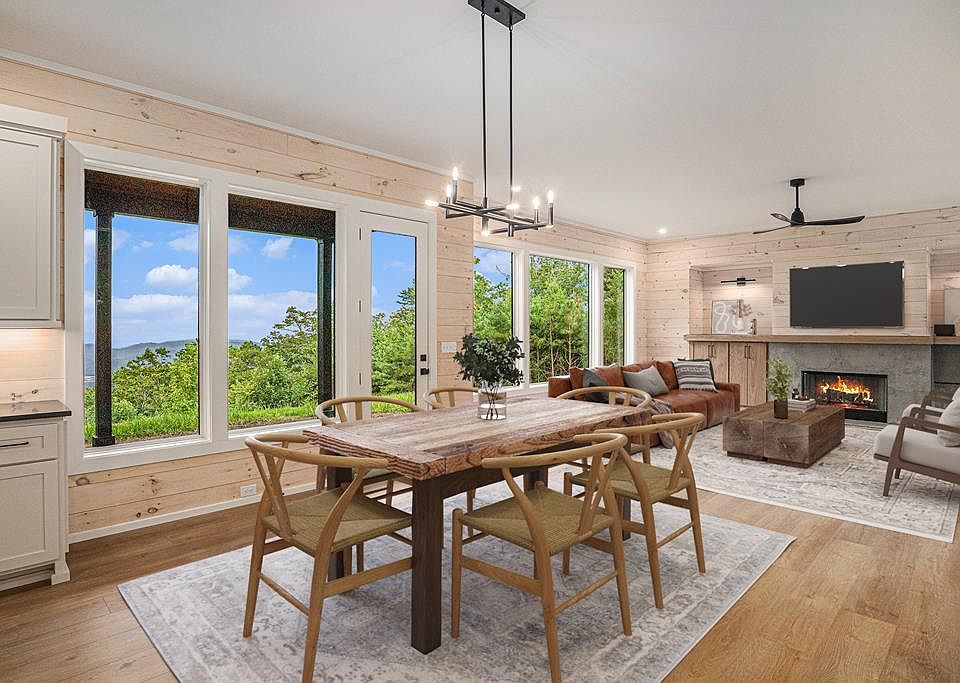 Escape the ordinary in this brand-new Patsios Homes masterpiece, perched on a premium lot at the top of Black Rock Estates. Perfectly positioned to capture sweeping long-range mountain views and adjoining State Park lands, it offers privacy and adventure right out your back door. Inspired by clean-lined Scandi barn architecture, this home blends modern mountain elegance with timeless simplicity. Inside, thoughtful details abound—custom cabinetry, quartz countertops, and a wood-burning fireplace create a warm yet sophisticated atmosphere. The primary suite frames serene mountain vistas and features a spacious walk-in closet, along with a luxurious bathroom complete with soaking tub, dual vanities, and a separate walk-in shower. An attached two-car garage adds comfort and convenience year-round. The three additional bedrooms lend perfectly for friends, family, office space, home gym, and anything in between. Whether you're seeking a full-time haven, weekend escape, or seasonal retreat, this home delivers the best of modern mountain living—just minutes from downtown Clayton and an easy, scenic drive from Atlanta, Asheville, Athens, and Greenville. Enjoy crisp autumn evenings by the fire, peaceful winter mornings with snow-dusted peaks, and endless warm-weather adventures with Black Rock Mountain State Park, Lake Burton, Lake Rabun, Tallulah River, the Chattooga River, and more right at your doorstep.