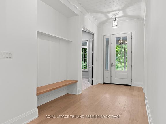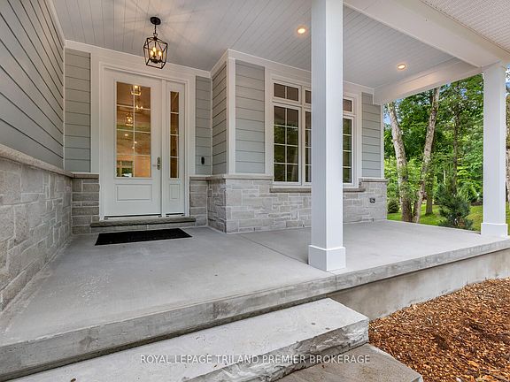 This coastal-inspired luxury home offers every imaginable amenity and is currently under construction by Spheero Homes. Nestled in the trees, this 3+2 Bed home boasts over 3740 sq ft of finished expertly designed living space. As you approach the property, take in the beautiful curb appeal and serene surrounding. Enter through the front door into the grand foyer featuring 10ft ceilings and custom oak bench through to the open concept main level including generous kitchen boasting custom high-end cabinetry and countertops, island with breakfast bar, hidden prep area with additional sink and pantry; dinette with access to the backyard and covered porch; bright great room with soaring vaulted ceiling, and cozy gas fireplace with custom surround and mantle; convenient main floor laundry/mud room with custom storage and bench; 3-piece bathroom; & 3 spacious bedrooms including primary suite with box tray ceiling, walk-in closet, & spa-like ensuite with double sinks and tiled shower with glass enclosure. The fully finished lower level boasts an additional 2 beds, 2 baths, family room and potential bonus room. Enjoy the sights and sounds of nature on your covered front porch or on the 432 sq ft covered porch at the rear of the property. Features include: fully insulated 27'x26' garage with oversized 10'x9' doors, side mount garage door openers, hardwood flooring throughout main level and basement (excluding bedrooms, baths and flex basement room), heated floors in all bathrooms, oversized basement windows, 8'10" foundation walls for high basement ceiling, gutter guards, wifi controlled radiantin floor heat in garage, basement and rear porch, gas line for stove & BBQ, Lennox HVAC with steam humidifier, boiler with on demand hot water & more! Wiring roughed in for: future hot tub, future EV charger, 2 ceiling fans on rear porch, theatre & security systems. Rear cedar hedge with privacy fence. A must see home where no detail was missed!