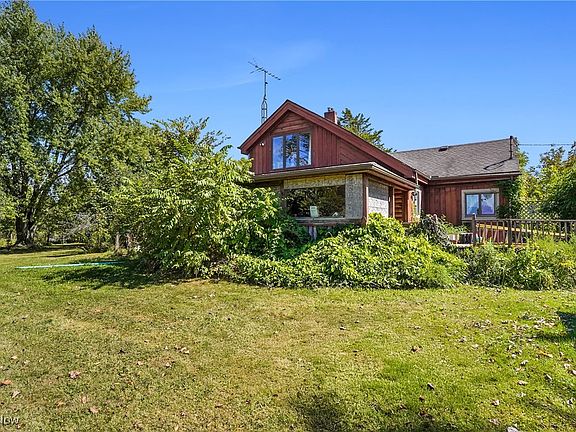 Beautiful treed lot nestles this charming chalet style home. Cathedral ceilings in the living room, One bedroom located on the second floor. The home also has a large detached garage with a second floor. Small pond located behind the home. Turn this property into your dream home.