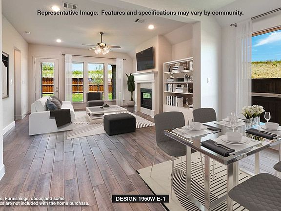 Home office with French doors set at entry with 11-foot ceiling. Open kitchen offers center island, 5-burner gas cooktop and corner walk-in pantry. Dining area is adjacent to open family room with wall of windows. Spacious primary suite. Dual vanities, garden tub, separate glass-enclosed shower and large walk-in closet in primary bath. Secondary bedrooms include walk-in closets. Covered backyard patio and 5-zone sprinkler system. Mud room off two-car garage.