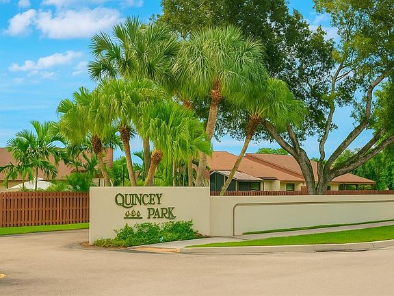 HOA is only $101 monthly. Welcome home to this stunning 2 bedroom, 2 bathroom waterfront home in Quincy Park, boasting high ceilings, open floor plan, and ample natural light. The beautifully remodeled interior features a modern kitchen with stainless steel appliances, breakfast bar, wood look flooring in the bedrooms and remodeled bathrooms. Relax with a cup of coffee or entertain your friends in your screened in patio overlooking your yard, mango trees and lake. Your new home has a one car garage and 2 additional parking spaces in the driveway. Parking in the common area is also allowed. HOA includes maintenance of the common areas, a master sprinkler system, and tennis courts. Remodeled in 2019, AC 2024, Electrical panel 2023, Tankless Water 2017, Ring cameras and alarm.