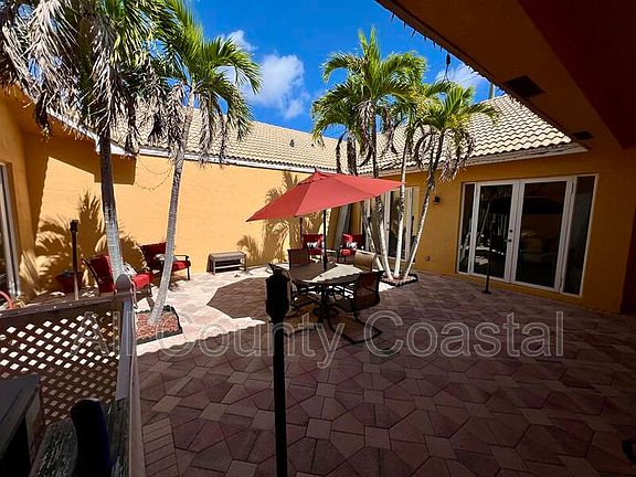This exceptional 3-bedroom, 3-bathroom villa with a 2-car garage boasts a unique design. The main house includes 2 bedrooms and 2 bathrooms, while the separate 1-bedroom, 1-bathroom suite is across the enclosed courtyard, ideal as a mother-in-law suite or private office. Combining luxury and practicality, the main house features a highly sought-after split floor plan and stunning tile flooring throughout. As an end unit, this villa provides added privacy and an abundance of natural light. The private courtyard is an entertainer's dream, with direct access from both the main house and the separate suite. With a security system included in the maintenance, peace of mind comes standard. Better than any single-family home, this villa is truly a gem you won't want to miss! Easy to show, All County Coastal Property Management residents are enrolled in the Resident Benefits Package (RBP) for just $65/month. The package includes: Renters Insurance, On-demand pest control. And more!
