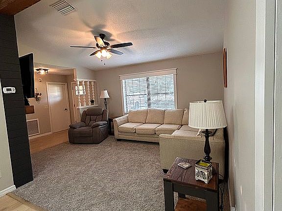 Step inside and you’ll instantly feel the pride of ownership. Vaulted ceilings and an open, airy layout are complemented by brand new flooring, custom shiplap entertainment center, upgraded window trim, and more. The kitchen, updated in 2022 with modern decor, offers both style and function. With split bedrooms, each featuring remodeled bathrooms, this home is perfect for family, guests, or even multi-generational living.