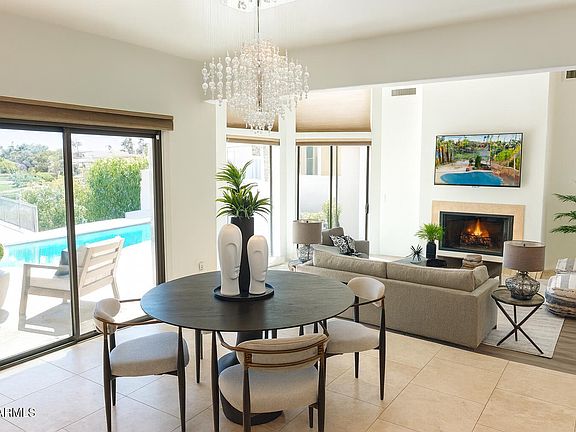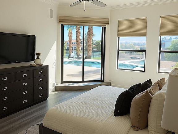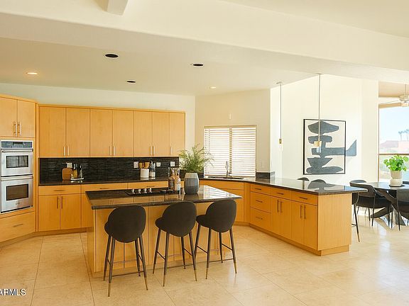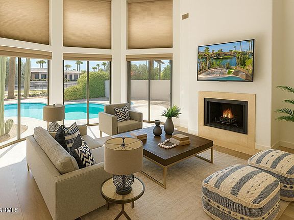 South-facing lakefront retreat offers breathtaking views of Lake Serena, a private boat dock, and the lowest price per sq ft on the water. 15ft+ Soaring ceilings, walls of glass, and an open floor plan highlight a chef's kitchen with maple cabinetry, granite counters, island seating, and double ovens. Enjoy a wet bar with wine fridge, elegant living and dining areas, and a spa-style primary suite with pool and lake views. Step outside to your private backyard oasis with pool, lush palms, and spacious patio ideal for entertaining.