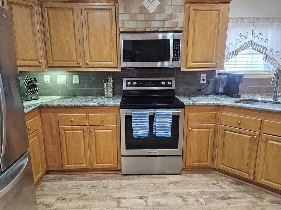 Solar tubesQuartz countersUpdated appliancesOpen layoutWooded surroundingsMetro tileWelcoming front porch