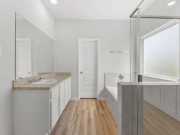 Private backyardStainless-steel appliancesVinyl plank flooringGranite countertopsGourmet island kitchenSeparate tub and showerWalk-in closet