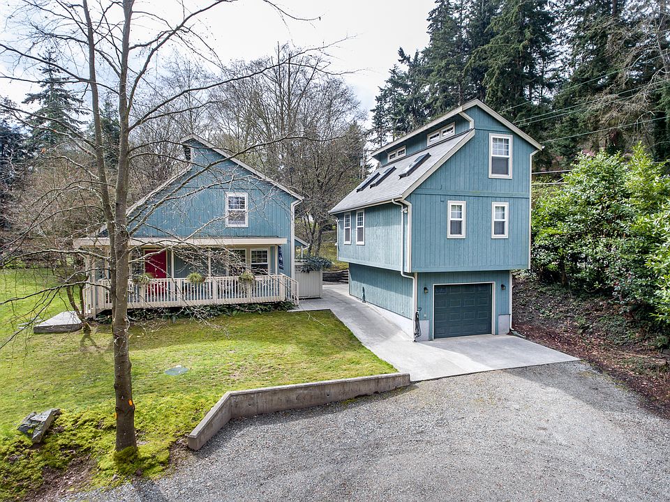 Immaculate, charming, Craftsman style home within blocks of the North-end ferry dock features hardwood floors, clear vertical grain fir trim, vaulted ceilings, open staircase make this home light and bright! 1330 sq ft, 2 bedrooms w/option to easily enclose a third in the main house. 728 sq ft ADU loft 1 bed/1 bath over carriage house garage, own private water share makes it a legal rental and has long term renter who would love to stay if you want the xtra income. Wooded private acre lot.