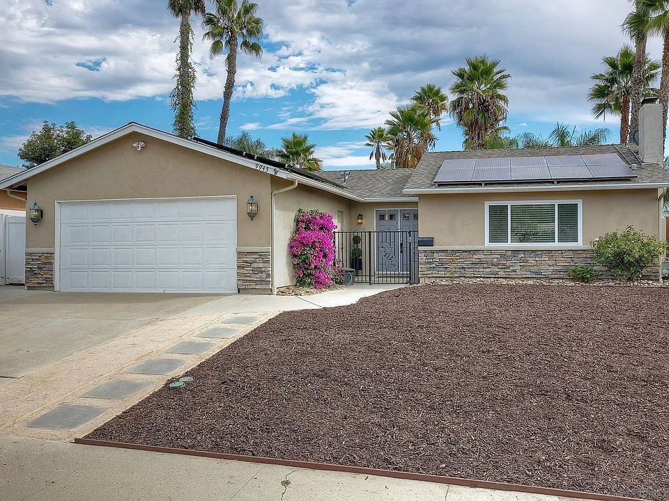 Step into single-story comfort in the heart of a highly sought-after East County neighborhood in Santee. This meticulously maintained 3-bed/2-bath residence spans approximately 1,312 sq ft and features paid solar—yes, you read that right—bringing real energy savings and fewer monthly worries. Vinyl plank floors echo throughout, offering durability and style. The brand-new kitchen dazzles with shaker-style cabinetry, quartz countertops, and stainless steel appliances ready for your next culinary creation. A wood-burning fireplace anchors the living room, adding classic warmth and a focal point for cozy evenings. Step outside under the covered patio, pour a glass of wine into the jacuzzi, and unwind while you watch your favorite film or simply enjoy the evening air. In the surrounding area, you'll discover why Santee continues to charm: an abundance of parks, walking trails, and open spaces invite active living and connection with nature. Shopping and dining are just minutes away in the Town Center area, making errands quick and schooling solid for families. With easy access to freeways and commuter corridors, you'll be connected to greater San Diego while still enjoying the relaxed suburban lifestyle. This home is truly immaculate—inside and out—ready for its next chapter. Whether you're downsizing, growing your family, or simply stepping into your dream starter, this one hits all the marks. Don't miss this opportunity to combine modern upgrades with the timeless appeal of a single-level, well-cared-for home in a location that consistently delivers.