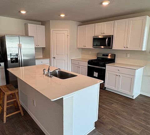 This single-story home offers 3 bedrooms, 2 bathrooms, and 1,412 sq. ft. of comfortable living with a 1-car garage. The open concept layout features a spacious living room, dining area, and modern kitchen with quartz countertops, stainless steel appliances, shaker cabinets, and an eat-in bar. The private main suite includes a walk-in closet and ensuite bath with quartz counters and a tub/shower combo. Two secondary bedrooms with large closets are perfect for family, office, or play space. Enjoy a landscaped yard with irrigation, smart home features (control lights, thermostat, locks from your phone), and stylish finishes like vinyl flooring in main/wet areas, quality carpet in bedrooms, and quartz in all baths.