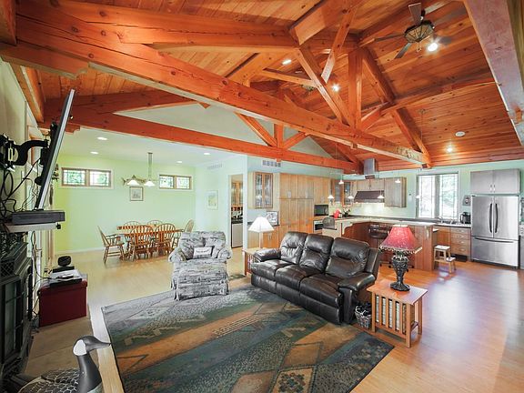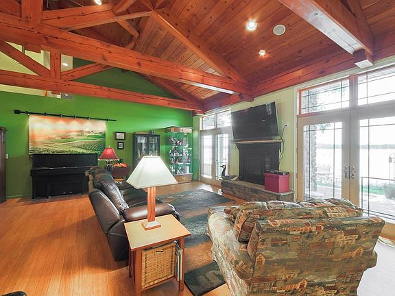 No need for a vacation...when you live at the waters edge. 140' frontage on Portage Lake, part of the Portage 7 lake chain of lakes. Just bring your boat and skis! Dock is in! This custom built, open floor plan, Prairie style house was designed to enjoy the beauty and serenity of the lake. The "building green" concept was used to construct an ecofriendly home. Zoned radiant heat. On demand hot water. Solid wood core interior doors throughout. Walk from the luxury master bathroom to the hot tub on the NEW deck. 1st floor master suite with slider to the lake, walk in closet.. 3 bedrooms up. 1 has private full bath and walkout to balcony. 2 more bedrooms with full bathroom. Full kitchen, all appliances stay in upstairs living area. Balcony has spiral staircase down to the water. Along with a 3 car attached heated garage with 1/2 bath for the bathers/boaters, there's a 35 x 40 Pole Barn and a 25 x 30 Boathouse with heater. Plenty of storage for all your toys. New roof and Deck.