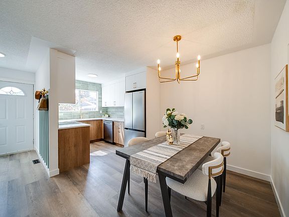 Welcome to 9949 171 Avenue, a beautifully updated townhouse nestled in the desirable Baturyn community of North Edmonton. This home offers modern style and comfort with a bright BRAND NEW KITCHEN featuring QUARTZ countertops, sleek cabinetry, gold hardware, and stainless steel appliances. Fresh flooring, updated lighting, and contemporary feature walls add warmth and character throughout the open living and dining areas, while large windows and patio doors let in plenty of natural light. Upstairs you’ll find spacious bedrooms and a renovated bathroom with stylish vanity, new fixtures, and tiled shower/tub. The FULLY FINISHED basement provides additional living space perfect for a rec room, office, or gym with ANOTHER FULL BATHROOM. Outside, enjoy a serene complex with a welcoming front path. Located close to schools, parks, shopping, public transit, and with easy access to the Anthony Henday, this move-in-ready home combines convenience and thoughtful upgrades in a family-friendly neighborhood.