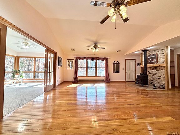 POSSIBLE 3RD BEDROOM! Experience lakefront living at its finest in this serene 2 bed, 2 bath retreat with just over 400 ft of private water frontage. Nestled in nature, this peaceful property features a spacious two-story workshop, screen house, and garden shed—perfect for hobbyists and outdoor enthusiasts alike. The large chain of lakes right outside your door is ideal for fishing Bass, Pike, Perch, and Bluegill. Enjoy beautiful outdoor spaces including large porches and a four-season sunroom with panoramic views of wildlife and the water. Inside, you’ll find hardwood floors made from timber sourced directly from the land and a cozy wood-burning stove for winter nights. With inviting living spaces and a den, space is in abundance. Whether you’re relaxing on the porch or exploring the grounds, this property offers the perfect blend of comfort, privacy, and natural beauty.