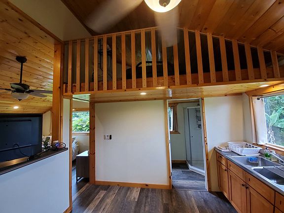 Peaceful and quiet standalone Ohana Studio unit located in Waiakea Uka area in Hilo. This studio unit is about 570 square feet including the loft area (the loft has a low/slanted ceiling!). It is fully furnished with a full kitchen. The studio was recently renovated with new paint, flooring, and features throughout.