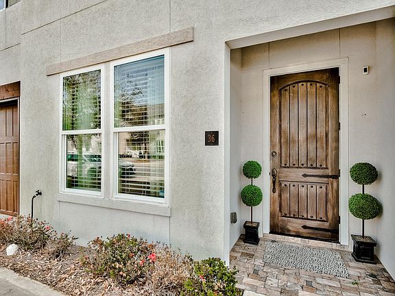 Experience luxury living at Destin Oaks 36, a stunning townhome nestled in an upscale community. This beautifully designed residence features 3 bedrooms and 2.5 bathrooms across a spacious 2,078 sq. ft. open floor plan, perfect for modern living.The interior showcases coastal-inspired decor with exquisite finishes throughout. The gourmet kitchen features custom cabinetry, a large island, a farmhouse sink, and high-end appliances. Additional upgrades include crown molding, a wet bar with an ice maker and sink, quartz countertops, a mother-of-pearl inlaid tile backsplash, and an integrated sound system.Retreat to the master suite, which offers a generously sized custom closet and an ensuite bath that ha a luxurious soaking tub alongside a separate glass-enclosed shower. Smart home technology enhances convenience with control over door locks and the thermostat.