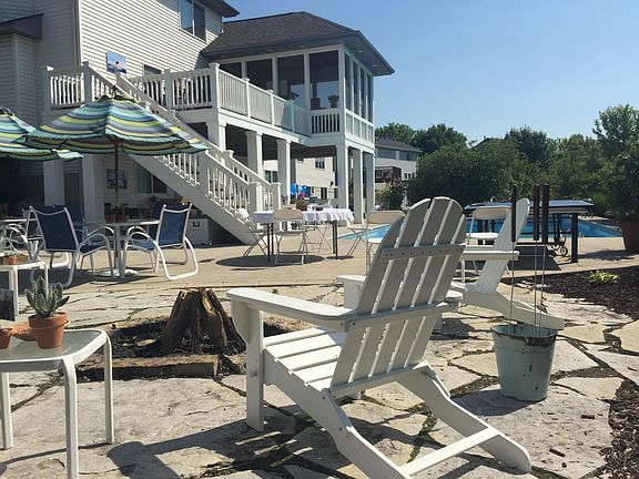 Nestled in the prime location of Bavaria Hills, this inviting 4-bedroom, 4-bathroom residence features a large south-facing swimming pool area with extensive landscaping and gardens, providing plenty of privacy and natural beauty. A large deck with screened porch overlooks the pool, surrounded by expansive stamped concrete and a cozy outdoor stone fire pit situated on top of large pavers. From the pool, follow the flat stone stairway up to discover multiple raised garden beds surrounded by additional composite decking. Step inside to discover a bright and airy home featuring tall, vaulted ceilings and a beautiful gas stone fireplace. Enter the kitchen that’s made for a chef, featuring modern appliances and a custom-made center island. Ascend to the large primary suite, complete with a luxurious bathroom featuring double sinks, a jetted soaker tub, a separate shower, and a walk-in closet. The spacious lower level features a walk-out to the pool, a large family room with a 2nd gas stone fireplace, quiet bedroom, full bath with open walk-in shower, and a storage room with built in shelving. The gas heated 3 stall garage is a bonus during cold months.