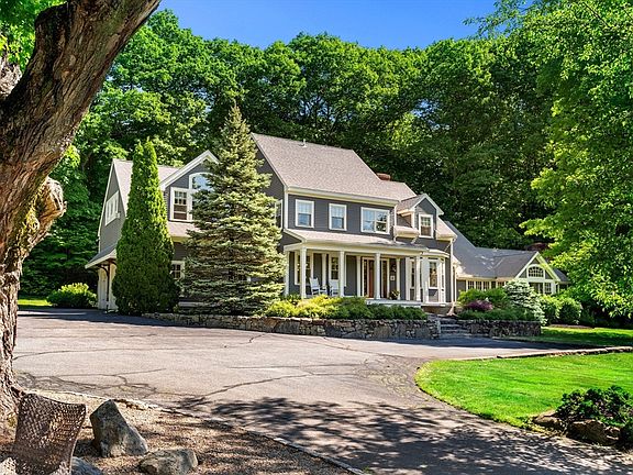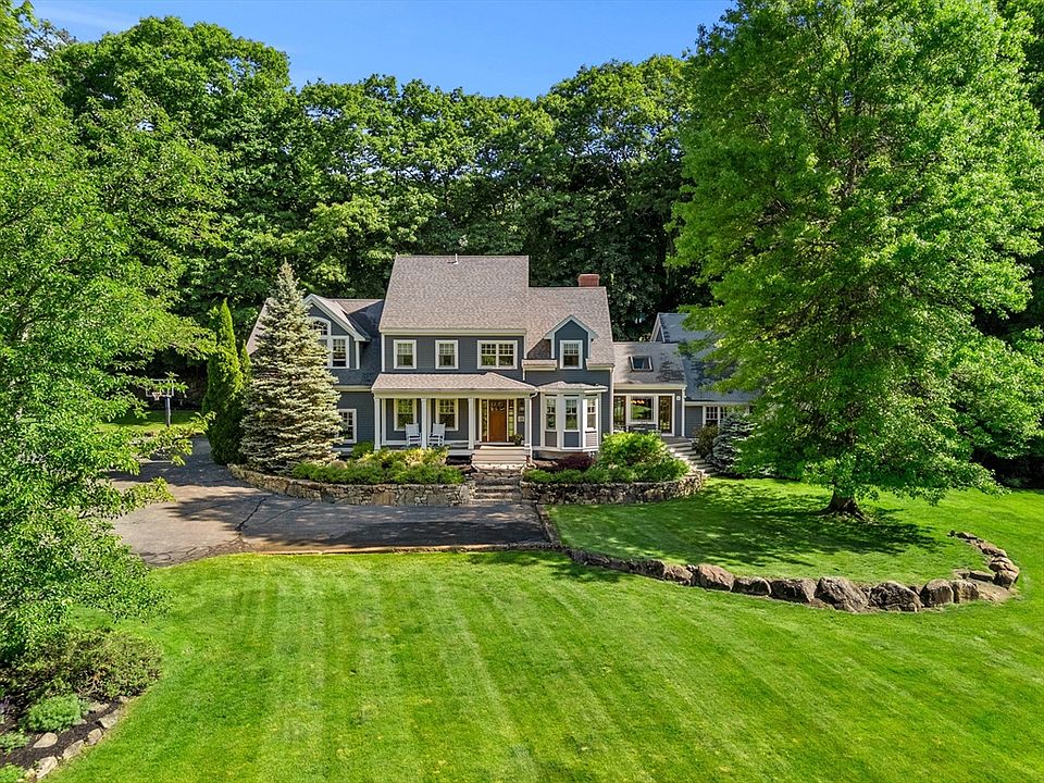 This distinguished estate is nestled on the historic grounds of the former Samuel Dane Farm. Rebuilt in 1987, this home seamlessly blends modern comforts with the timeless charm of yesteryears. Pass through the stately fieldstone pillars to be enveloped by the lush 5 acre rolling pastures, perennial gardens, and specimen trees offering a peaceful, tranquil enjoyment for both family and horses who currently reside in the beautiful red barn. The property has access to the Essex County Rail Trail. The main house offers an impressive layout, featuring 5 bedrooms and 4.5 baths. The heart of the home, the kitchen, has been beautifully remodeled, boasting quartz counters, a six-burner Wolf stove, double ovens, an oversized island with seating, a built-in Sub-Zero refrigerator, and a convenient coffee station complete with water supply. The 5 stall barn w/heated tack room, barn in & out paddocks, outdoor sand riding ring and open fields are perfect for equestrians in the family.