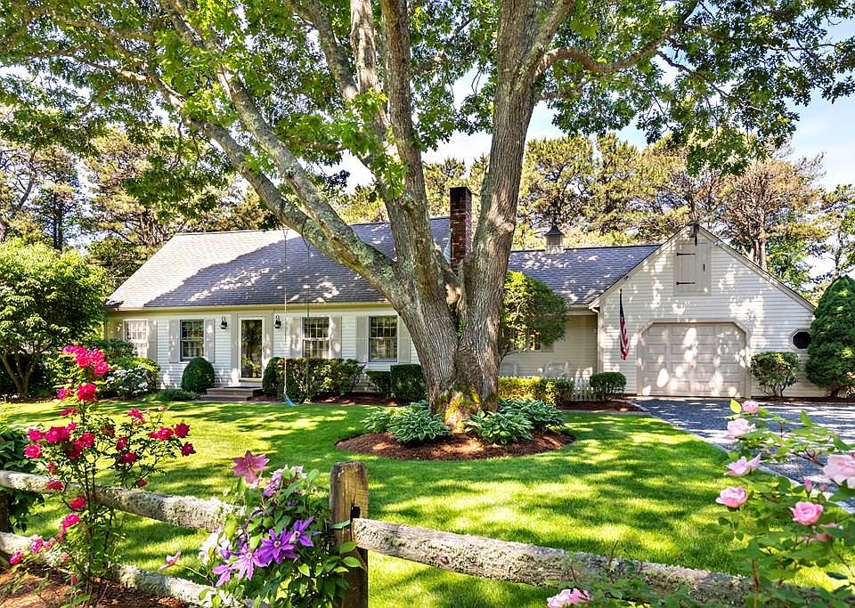 This is your dream house! It's an impeccably maintained 3 bedroom, 2.5 bath home, set on a 3/4 acre park-like setting, just a short distance to several of Eastham's bay beaches. We have a recent major update to the quartz countered kitchen, which opens onto a large deck with outdoor brick fireplace. The open dining/living area has a wood burning fireplace, hardwood floors (hardwood flooring is throughout), and recessed lighting. The first floor front-to-back primary suite is light and bright with a beautiful full bath. Upstairs are 2 large bedrooms, another full bath and a large storage area. The basement has a large finished family room. The property is planted with wonderful perennial shrubs that'll provide delightful colors year- round. Natural Gas Generator. This home has rights to association tennis and pickleball courts. Dream here!