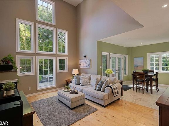 WELCOME TO LAKESIDE LIVING. This stunning home is nestled in the quiet enclave of Belle Ewart. Cooks Bay a mere minutes from your front door. Beaches, an awesome sandbar, ice fishing, sledding. All a part of your new life***The main floor offers a stunning living room with a18-foot ceiling, tons of windows bathing the room in light. And gas fireplace. Huge kitchen with gas cooktop, double oven, granite counters and storage galore. The large breakfast/dining area overlooks both the kitchen and living room providing a complete open concept family and entertainment space. Walk out directly to a large deck and hot tub. Almost complete privacy. Main floor also has a home office with its own walk out to the deck. That's right. Need a quick refresh away from the office. Step right outside. A large laundry room provides tons of closet space; direct walk out to the side yard; and another direct walk out to the 2-car garage***Upstairs provides a spacious primary bedroom with extra large walk in closet and a private spa-like ensuite - soaker tub, glass shower, double sinks. Two additional and well sized bedrooms complete the main living space***The stunning finished basement is its own oasis/escape. Main rec room space provides built in speaker system and seating area all to be enjoyed in front of a custom built TV area with electric fireplace. Off to the side is another spacious rec room area with small kitchenette area. Offers home gym or more rec room space opportunity. Pool table, ping pong table, Texas Hold-em table. You complete the gaming room you would like. A 4th bedroom offers additional family or guest space or is ideal for a home gym or home office flexibility (just in case you want the one upstairs to be more like a little den/book nook!!)***And back to the private yard. Open, spacious. Large shed off in one corner. Hot tub. Family BBQs are for sure some fun times waiting. Incredible privacy with a forested area behind and to one side of the yard***WELCOME HOME!!