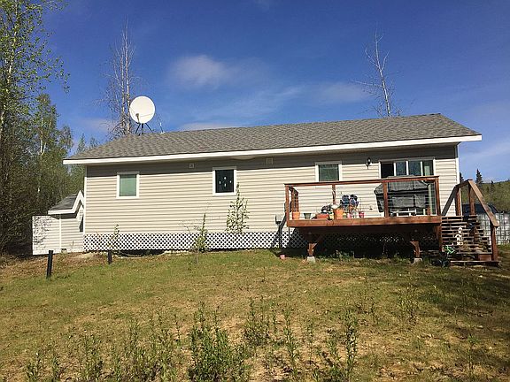 Beautiful 5 star energy rated home built in 2005, right off Farmers Loop on just over an acre of land. Front and back deck, firepit, matching 12x12 storage shed, large fenced in back yard. 1500 gallon heated and insulated water tank, comes with a 500 gallon Greer poly tank for hauling water. 500 gallon above ground fuel tank. Quiet neighborhood with no through traffic.