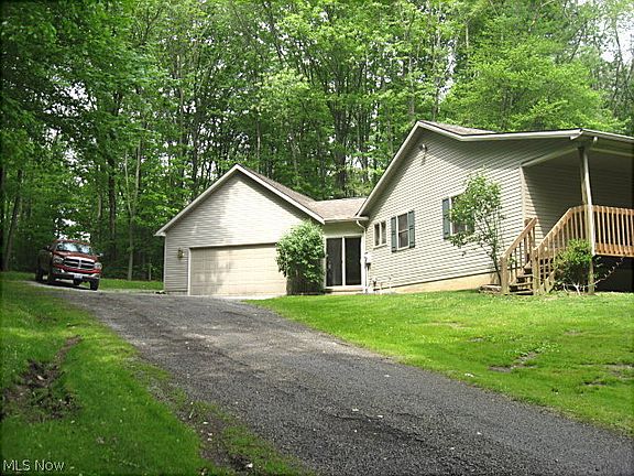 REDUCED! A Little Bit of Secluded Paradise! Enjoy watching deer, turkey and other wildlife while relaxing on your large wrap around porch. This vinyl sided Ranch home built in 2001 has a large open Greatroom with fireplace, 2 bedrooms with a 3rd one in the finished basement, 2 full baths up, first floor laundry and enclosed breezeway with Hot Tub. There is also a large attached 2 car garage, a 12x16 shed and beautiful exterior gardens. All this on 2.4 scenic acres. Home is also across from the Bike Trail and the Historic Coke ovens. This is not a home you want to pass up, put it on your Must See List. Home built by M & M Builders.
