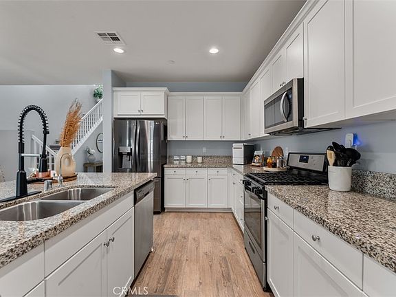 Welcome to your future dream home! This stunning property built in 2020 offers 2,223 sq.ft of thoughtfully designed living space on a generous 9,056 sq ft lot. From the moment you enter you'll be captivated by the expansive layout and modern features. Step into the grand entryway into a bright, open concept kitchen perfect for entertaining. The kitchen boasts a large island with room for bar stools. Stainless steel appliances included. The adjacent dining area is spacious enough to host festive gatherings and holidays, seamlessly flowing into the cozy living room. Recessed lighting and plantation shutters enhance the homes' brightness and elegance. The master bedroom conveniently located downstairs includes a master bathroom with dual sinks and a large walk-in closet designed for both his and her's storage. An additional bedroom on the main floor offers versatility as a guest room, office or mother-in-law suite. A large laundry room with plenty of space is located downstairs. Upstairs you'll find a versatile loft area perfect for a playroom, movie room, or entertainment space. Two additional bedrooms and a full bathroom complete the upper level providing ample space for family and guests. The backyard is a true oasis with a newly built pool (2020), covered patio with ceiling fans and recessed lighting perfect for outdoor relaxation and entertaining. Fresh concrete spans the backyard and side of the home with additional grass and open areas for pets or playground equipment. The yard is equipped with a sprinkler system for easy maintenance. Additional highlights include a two-car garage with ample storage, a smart Vivint security system, a water softner, and solar panels for energy efficiency.