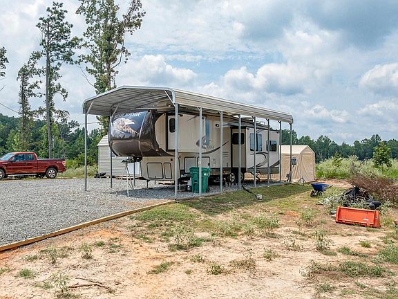 Spacious 10-acre unrestricted tract offering the perfect blend of privacy and convenience. Semi-cleared with a gravel drive leading to a prepared House Pad (80 x80) complete with a Certified Compaction Certificate. Utilities are already in place at the homesite, including water, electricity, and septic system. Additional improvements include a storage shed (12 X 24) with Heat and A/C, and RV cover (18 X 36), making this property ready for your dream home! Additional - 2013 Forest River Blue Ridge 5 wheel available, 3125 Cabin Edition (2 New A/C's, New Refrigerator, New Tires, New Battery) $25,000 Pictures available upon request.