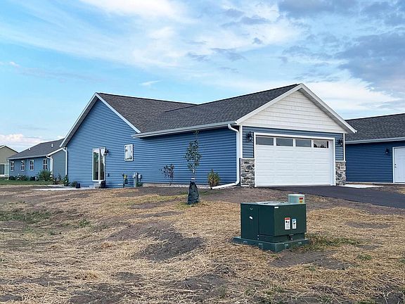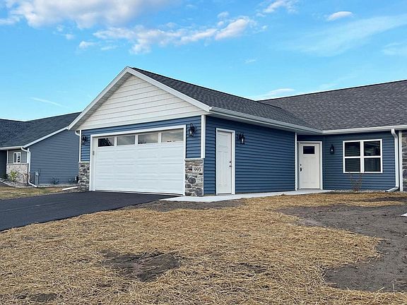 The search is over! Come and see the Blaze Twin Home?part of the popular Zero Lot Line collection by Denyon Homes. This thoughtfully designed floorplan offers 2 bedrooms, 2 bathrooms, and 1,166 finished square feet of functional living space. Enjoy affordable homeownership with no-step entry and convenient main-floor living, all without sacrificing comfort or quality. Inside, you?ll find an open-concept layout with vaulted ceilings, a cozy gas fireplace in the living room, and a fully equipped kitchen featuring soft-close, custom-built cabinetry. The main level also offers laundry space for added convenience. The owner?s suite boasts a private bathroom with a walk-in shower and generous closet space. A second bedroom and a full bath round out the main floor. The lower level offers great potential for future expansion! Already framed for a family room and third bedroom, and pre-plumbed for a third bathroom, it?s ready when you are. Exterior features include a private side yard, complete lawn and landscaping package, concrete patio, gutters, and blacktop driveway.,With no association fees and low-maintenance design, the Blaze Twin Home is PERFECT for those seeking value, flexibility, and easy living. All Zero Lot Line homes come with free central air and included kitchen appliances. Photos may be of a similar model.