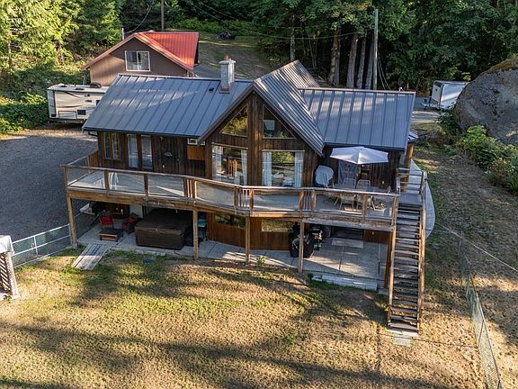 Welcome to 995 Nanaimo River Road, a 5.18-acre riverfront property tucked away in Nanaimo, BC w/ 2 homes. The main residence has 4-beds & 3 baths including a basement suite plus a detached 2-car garage w/ a loft. The primary home features exposed wood vaulted ceilings, original hardwood floors, & a spacious living room with a wood-stove. The SE facing deck spans the back of the home facing the river. The main level has 2-beds & 2-baths & the lower level has an add. 2-bed, 1-bath suite. The second dwelling, built in 2020, includes 2-beds & 2-baths, modern finishes, open-concept living w/ vaulted ceilings, & propane fireplace. The kitchen has quartz countertops, stainless steel appliances, propane stove, & a sit-up island. Add. features of the second home include polished concrete floors, 2400-gallon underground cistern, & RV hookups. W/ a private swimming hole on 5.18 acres, the estate provides plenty of privacy. (Measurements & data approximate & should be verified if important.)