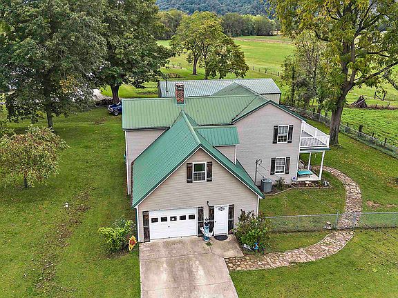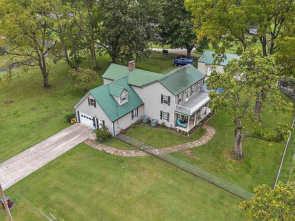 *Charming Farmhouse Oasis with Breathtaking Views!** Discover the perfect blend of rustic charm and modern living in this stunning farmhouse, nestled in a serene setting. With three spacious bedrooms and two full baths, this home is designed for comfort and style. Step inside to find beautiful wood floors that flow seamlessly throughout the open floor plan, creating an inviting atmosphere for family gatherings and entertaining. The well-appointed kitchen opens to a bright living area, making it easy to enjoy both everyday living and special occasions. Enjoy the tranquility of your fenced-in yard, ideal for children and pets to roam freely while you take in the gorgeous views of the surrounding landscape. A two-car attached garage provides convenience and ample storage, while a large detached metal building offers endless possibilities—perfect for a workshop, additional storage, or even a hobby space. Don’t miss out on this unique opportunity to own your dream farmhouse! Schedule your private tour today and experience the beauty and charm firsthand! Detatched 30' x 60' morton building on property *All new window blinds, Living room and dining room lights and ceiling fans, fenced in yard, 21ft hard side above ground swimming pool, major yard/landscaping cleanup, new lights in garage, new washer and dryer, rain spouts and screens, under cabinet lights in kitchen, painted kitchen and dining room* **Bonus upstairs may possibly be configured to an additional bedroom**