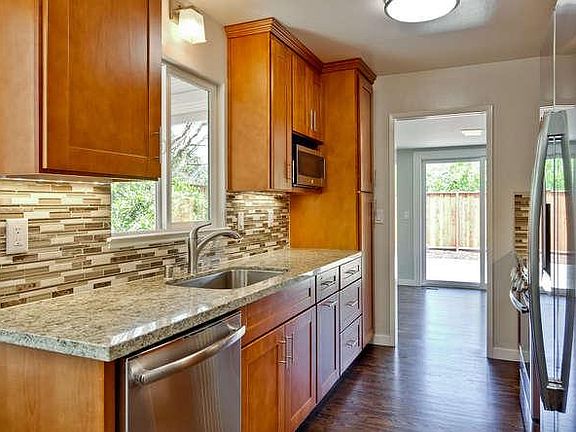 Beautifully updated Sunnyvale home w/Homestead high school 3 Bedrooms / 2 Bathrooms 1400 sqft home on a 7400 sqft lot Recent new Kitchen with Stainless Steel Appliances Large Living Room with Gas Fireplace Dining Area in Family room Eat in Kitchen Hardwood Flooring throughout New Dual Pane Windows New Central Forced Air Heating / AC Spacious / enclosed front and rear yards 2-car Garage w/automatic opener and Laundry Area Landscaping - Low Maintenance, Gardener included Easy access to Freeways, Top Schools and Shopping Schools: 0.7 miles West Valley Elementary 0.5 miles Cupertino Middle, 0.3 miles Homestead High. Location: 1.9 Miles to Apple 1 Infinite Loop 2.5 Miles to New Apple Headquarters 7. One Year lease or longer Tenant pays PGE, Water, Garbage, Internet Pets Welcome w/additional deposit No Smoking please