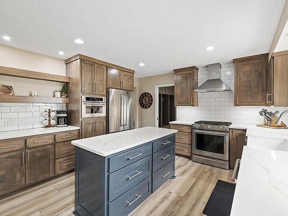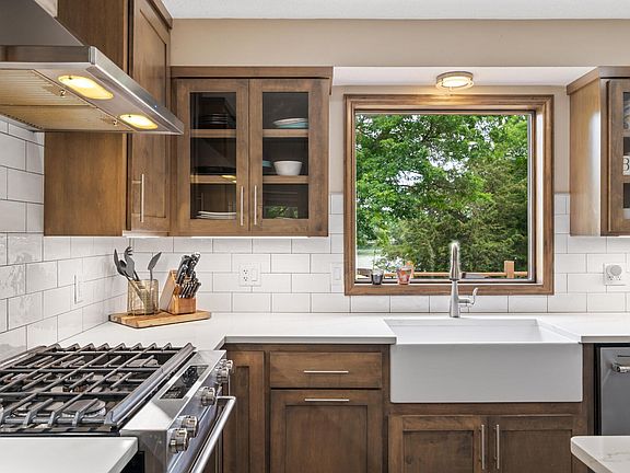 RARE LAKEFRONT ON PRIVATE LAKE KEEWAHTIN! Stunning 4BR/4BA home with 162 feet of east-facing shoreline on Lake Keewahtin rated "A" grade for water quality by Forest Lake Management District. Nestled on 1.4 private acres at the end of a quiet cul-de-sac. COMPLETELY RENOVATED main and upper levels feature gourmet kitchen with Maple cabinetry, center island, quartz countertops, subway tile backsplash, and stainless appliances. All 4 bathrooms have been beautifully updated, including the primary suite's private bathroom with luxurious heated floors. Luxury vinyl plank flooring flows throughout open concept living spaces with custom built-ins and designer finishes. Expansive 32x11' deck overlooks the lake with breathtaking views - perfect for entertaining. Beautiful exterior with brick accents complements the natural setting. East-facing shoreline provides gorgeous morning light and stunning sunrises. Additional features- insulated and heated garage, new well pump and pressure tank Aug 2025, new washer