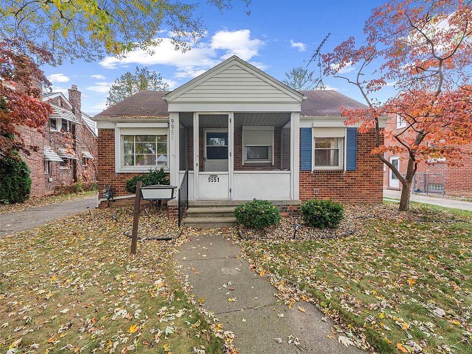 Welcome to this cheery 2-bedroom brick home! Enjoy three seasons from the inviting enclosed front porch! Hardwood floors flow throughout the main level. The fully finished basement offers incredible additional living space with a spacious family room featuring a cozy fireplace, a full bathroom, a large laundry/storage room, and a versatile bonus room perfect for an office, playroom, or hobby space. The basement has new flooring, making the space feel fresh, bright, and clean! The large eat-in kitchen provides plenty of cabinet space and room for gathering. All appliances are included. Major updates include a new furnace and A/C (2025), and the garage roof was replaced this year as well. Located just a block and a half from a nearby park, an 8-minute drive to Costco, and only 13 miles from Detroit Metro Airport, this home combines neighborhood charm with easy access to shopping, dining, and travel. Schedule your showing today and be in before the holidays!