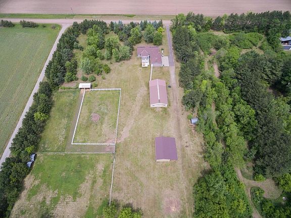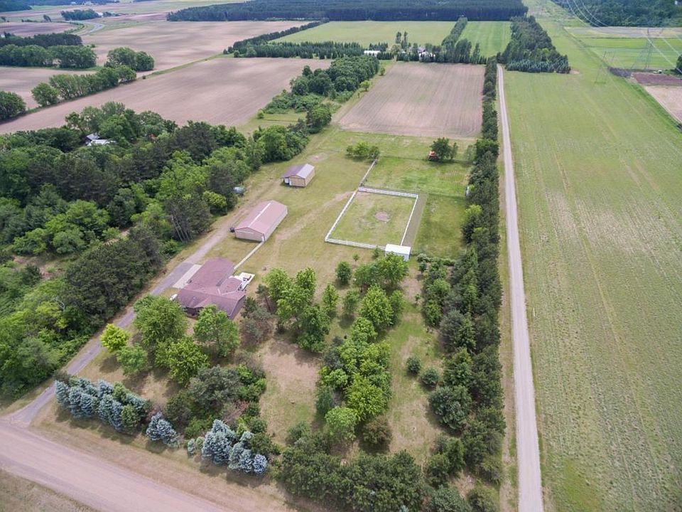 Picture perfect setting on 19+ acres! Breathe in and enjoy the quiet countryside..so much to take in here...on the main level you will find the living room with gas fireplace, open kitchen/dining room, a spacious master bedroom with private master bath, main floor laundry, and a cozy knotty pine 3 season porch! The full unfinished basement offers much additional space for storage or to finish off for additional living space. Outdoors you will enjoy the beautiful views from the maintenance free Trex deck with retractable awning and the large patio with hot tub! All set up and fenced for horses here, 36 x 64 horse barn with lean-to, 6 box stalls, hydrant and hot water heater with one wash stall, automatic waterers in barn and 2 of the 4 pens. Tons of space for all of the toys too in the 24 x 40 Pole building or attached 3 car garage!